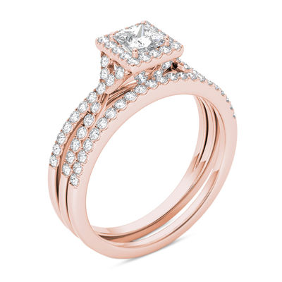 1 Ct T W Princess Cut Diamond Frame Twist Bridal Set In 14k Rose Gold Zales