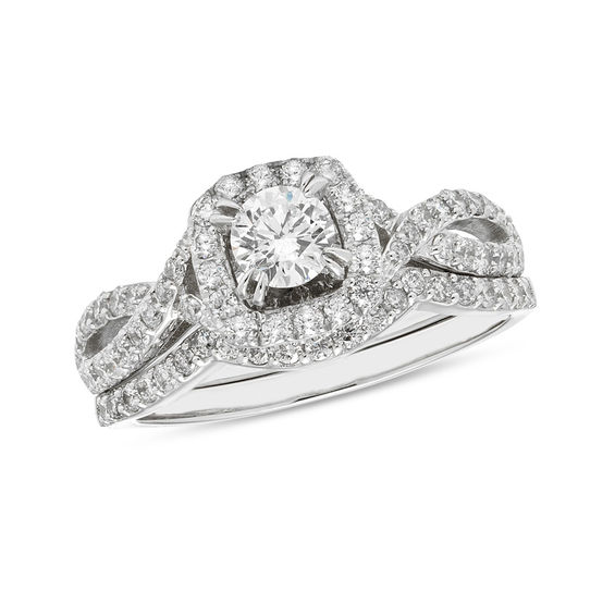 1 Ct T W Certified Diamond Cushion Frame Twist Shank Bridal Set I I2 Zales Outlet